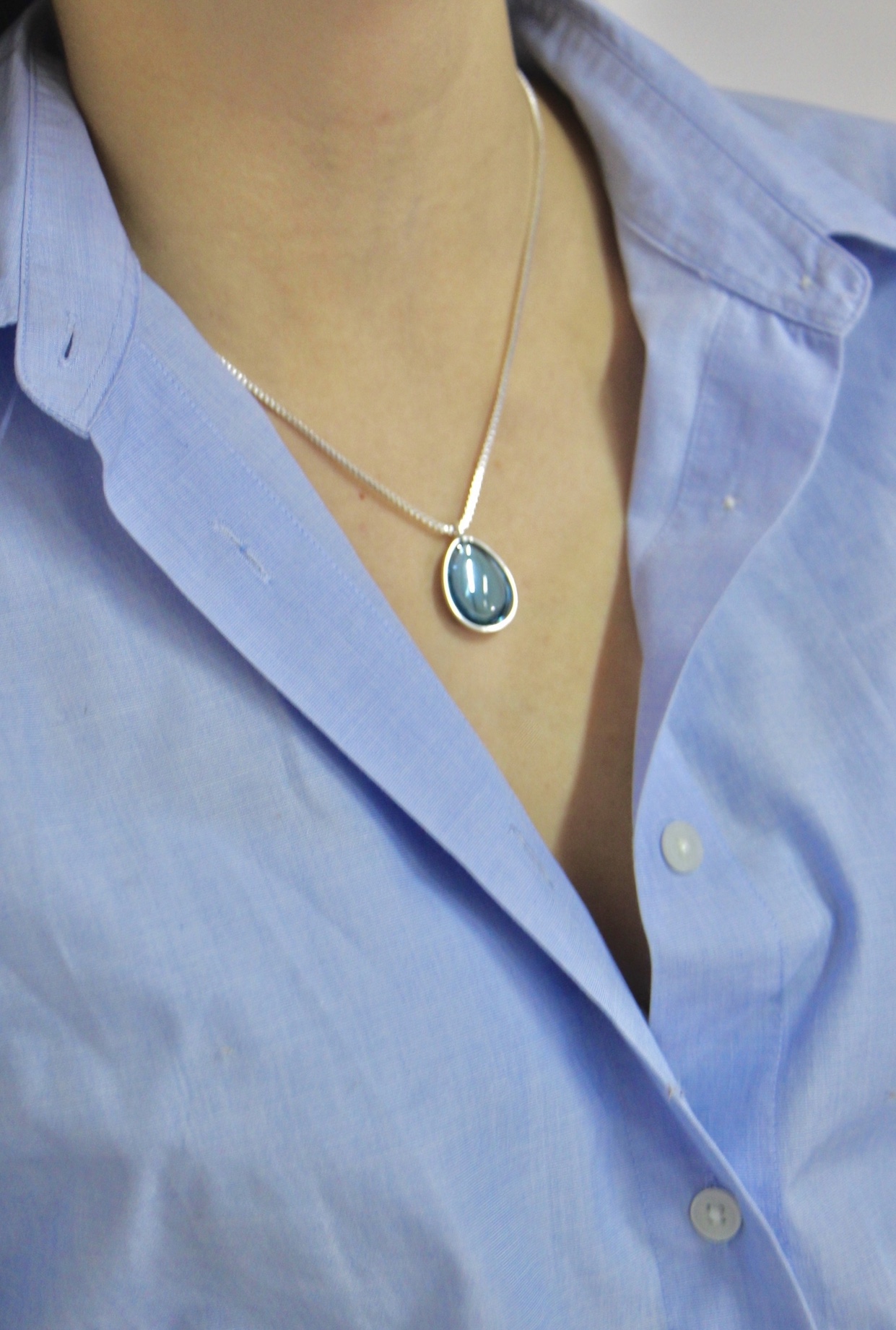 Brass Колье silver plated with insert from glass