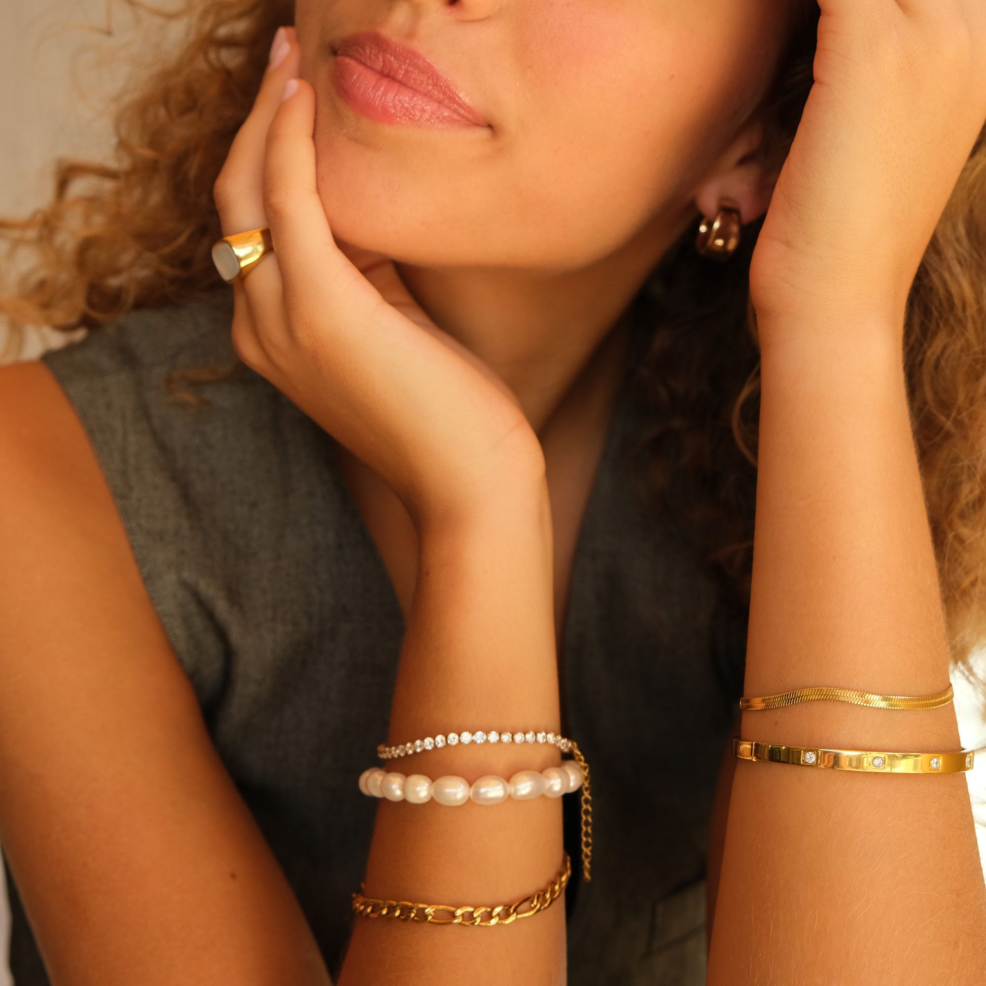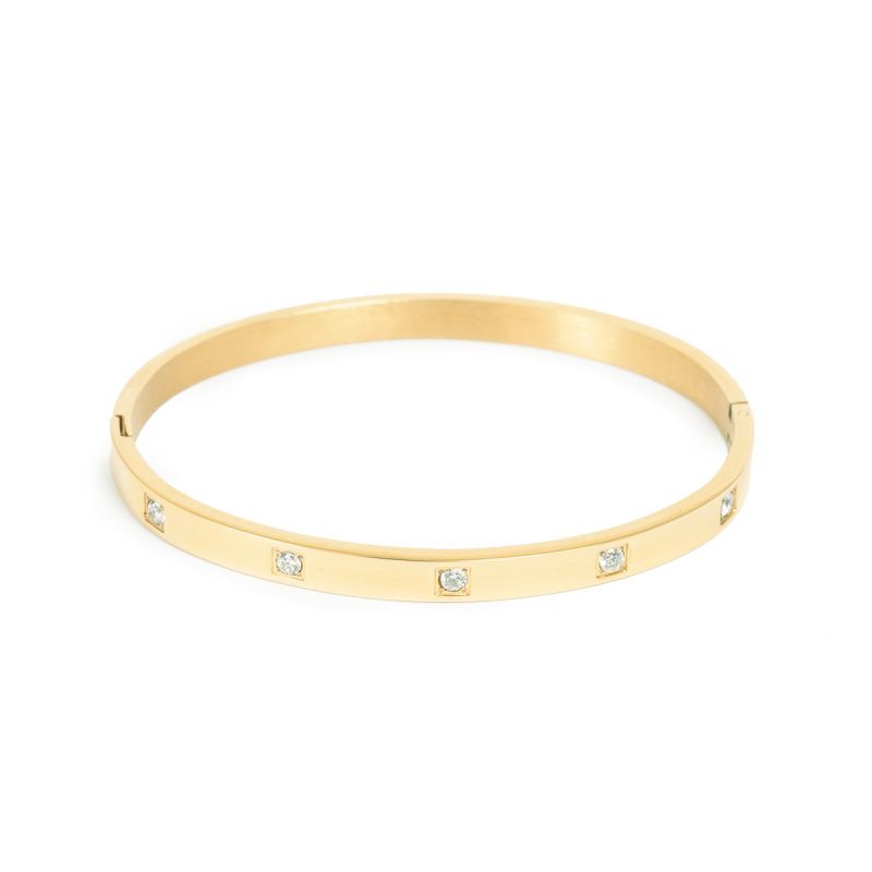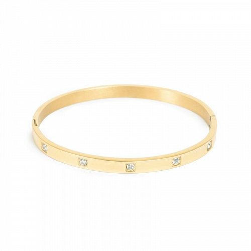 Stainless steel bracelet gold plated with insert from cubic zirconia