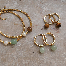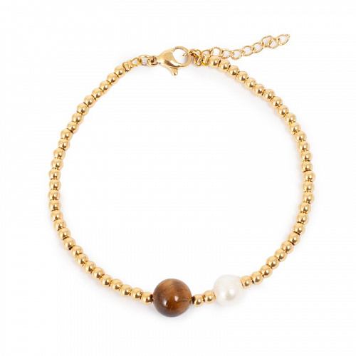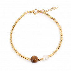 Stainless steel bracelet gold plated with insert from tiger-eye and pearl