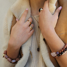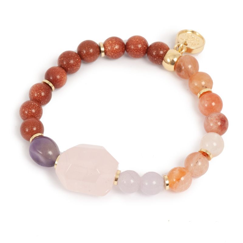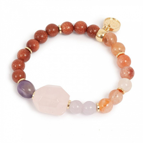 Brass bracelet gold plated with insert from rose quartz and amethyst and quartz