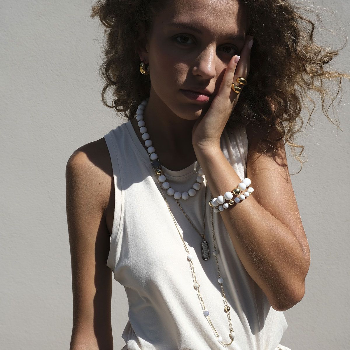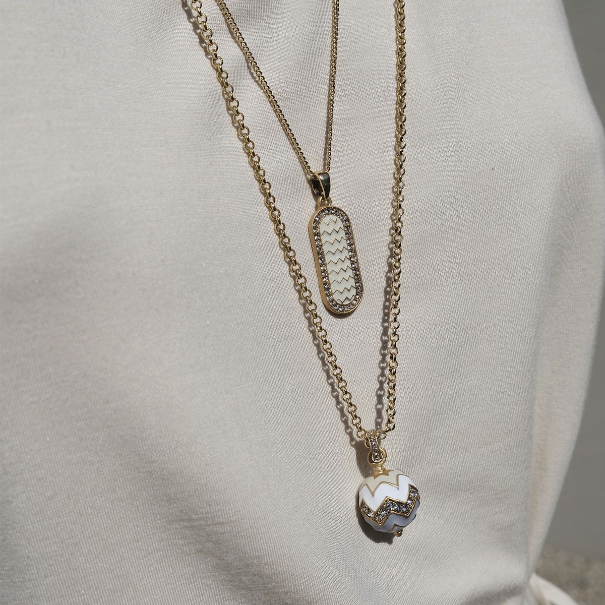Brass necklace gold plated with insert from enamel and glass