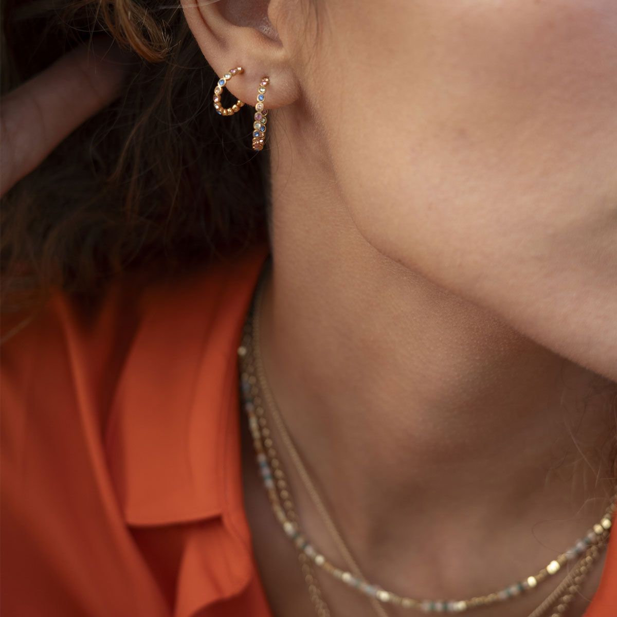 Vibrance is a beautiful, colorful collection adding that perfect touch with your outfit. The collection is based on textured coins adorned with sparkling, colorful stones. Here you can choose single pendants which are perfect for layering. Or if you prefer a bolder look, choose pieces with charms - one of this season"s major trends. Plated with real gold and real silver.
