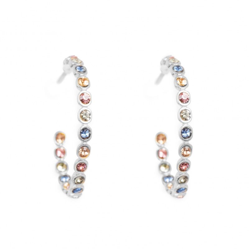 Brass earrings silver plated with insert from glass