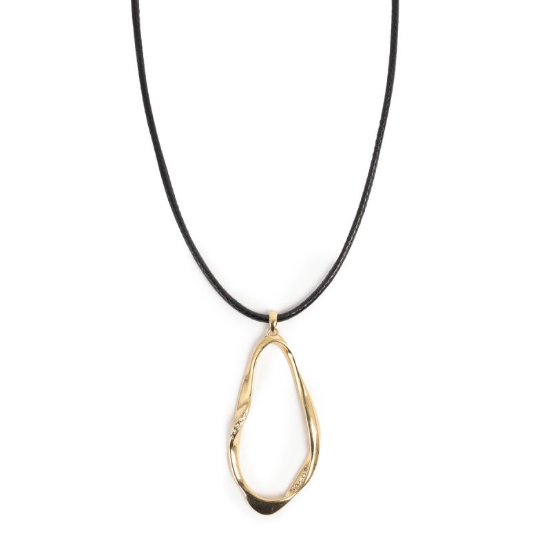 Brass necklace gold plated with insert from leather