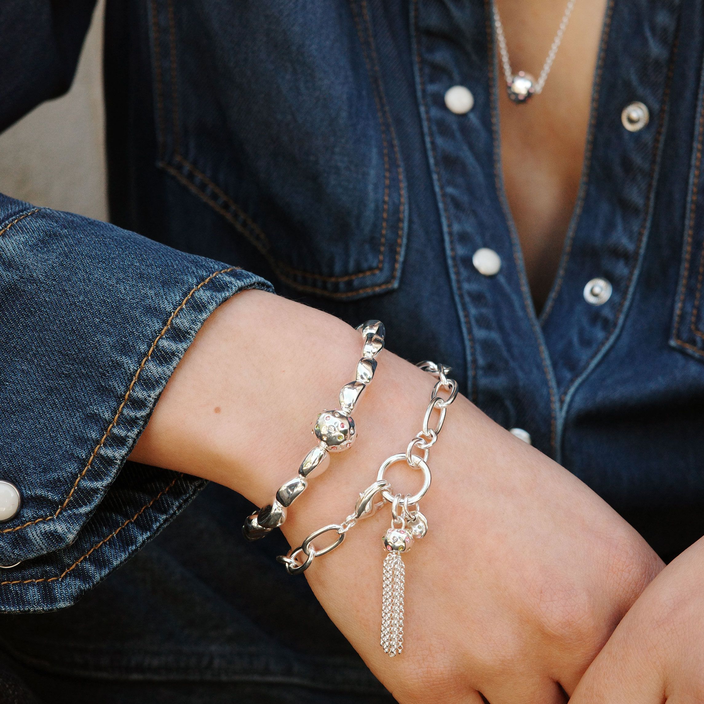 The feminine, bohemian trend is finally back, and this collection is the perfect fit for the style. The collection features sleek tassels, statement chains, and uneven beads adorned with small stones in sparkling colors. The subtle hues give the jewellery a delicate sense of exclusivity, making it easy to pair with various outfits. The pieces are just as beautiful worn layered as they are individually. The jewellery is plated with real gold and sterling silver.