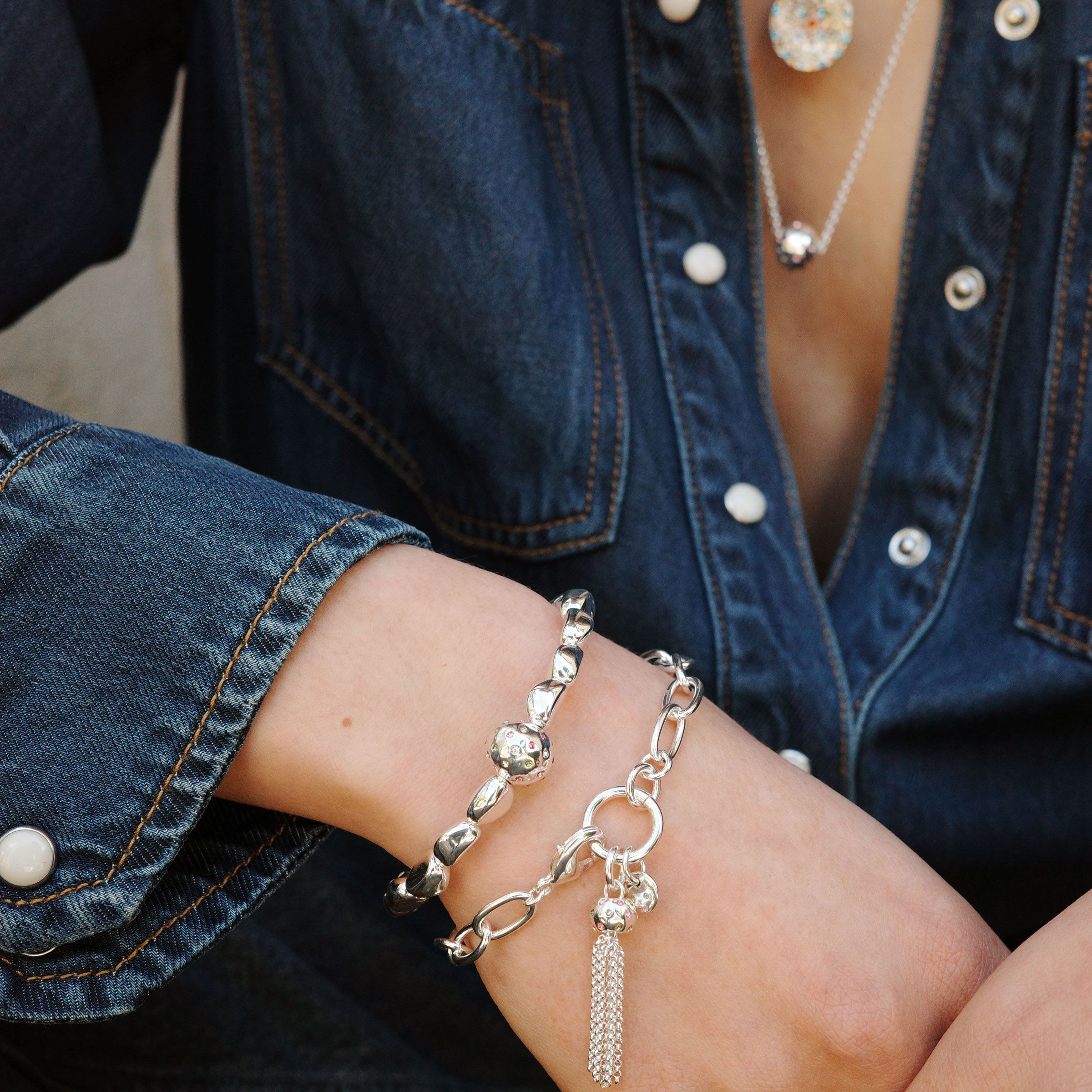 The feminine, bohemian trend is finally back, and this collection is the perfect fit for the style. The collection features sleek tassels, statement chains, and uneven beads adorned with small stones in sparkling colors. The subtle hues give the jewellery a delicate sense of exclusivity, making it easy to pair with various outfits. The pieces are just as beautiful worn layered as they are individually. The jewellery is plated with real gold and sterling silver.
