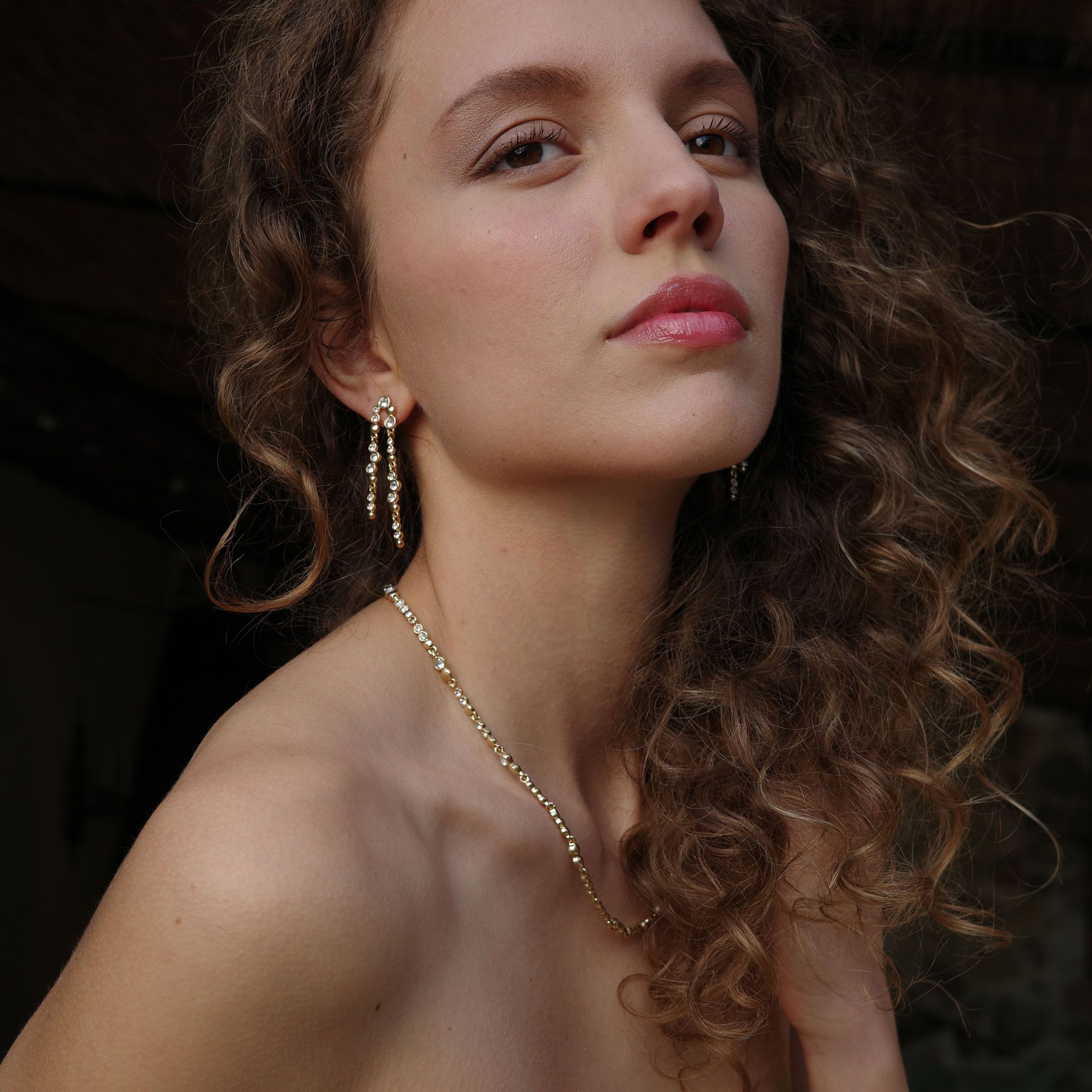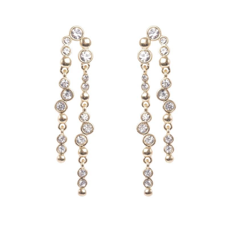 A beautiful and sparkling jewellery collection featuring crystal stones and metal droplets in delicate harmony. If you have multiple piercings, feel free to layer, and mix and match earrings. Plated with real silver and real gold.