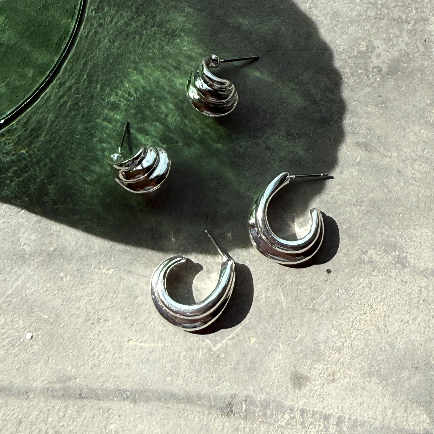 Soft metallic shapes and drops in hand-cut glass. A sleek and timeless collection that works just as well for everyday wear as for special occasions. The jewellery is plated with real gold.