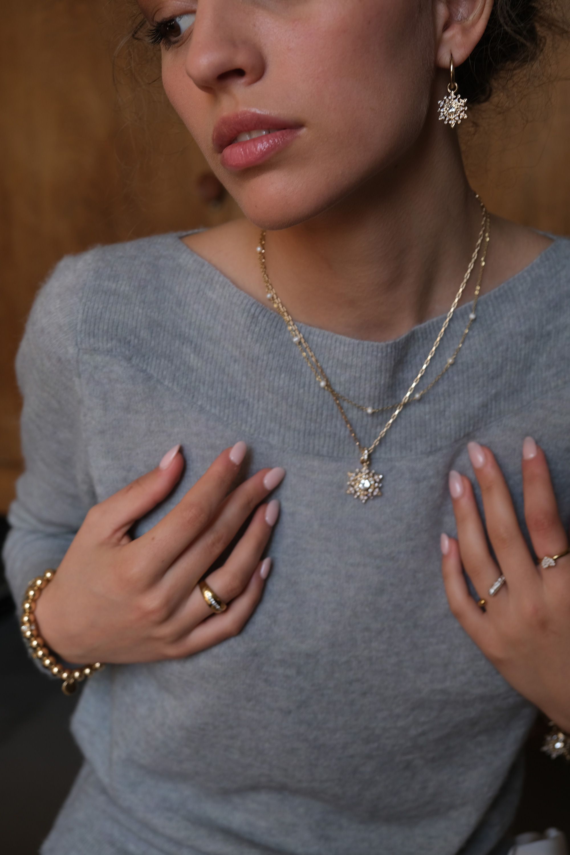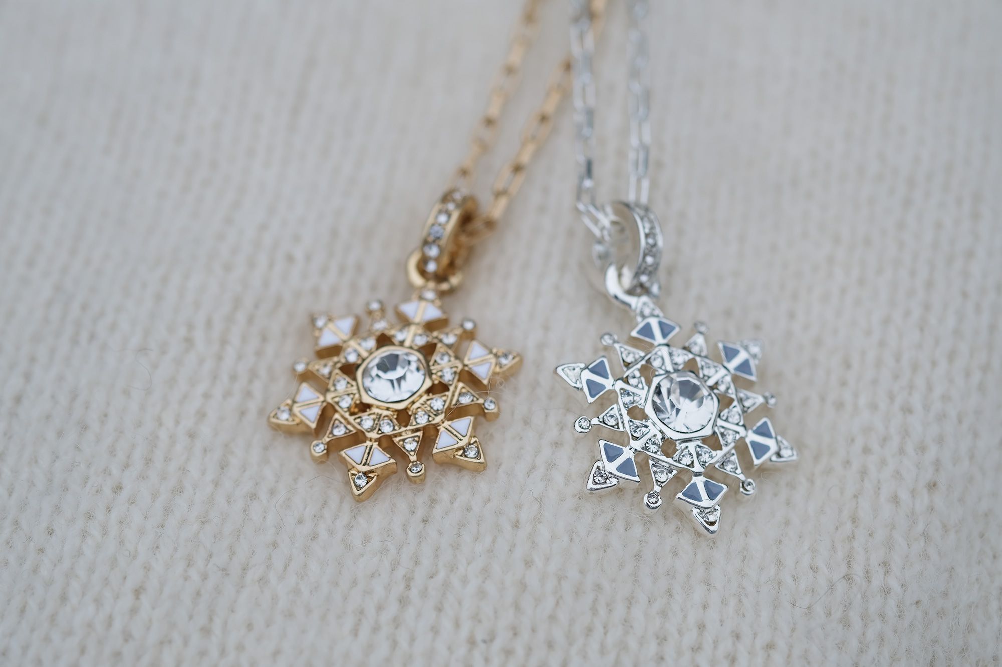 We doesn't love the magical moment of the first snowflakes gently falling from the sky? Just like us, each snowflake is beautiful and unique. The jewellery is decorated with enamel and crystal stones, making it a perfect gift for yourself or someone you love who shares a passion for winter. Coated with real silver and real gold.