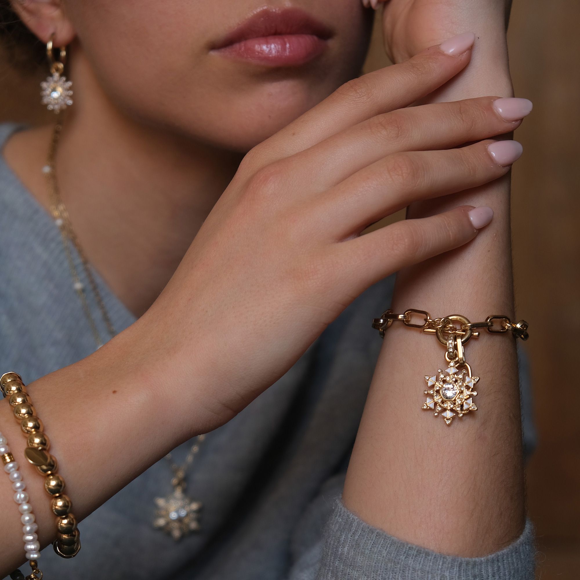 We doesn't love the magical moment of the first snowflakes gently falling from the sky? Just like us, each snowflake is beautiful and unique. The jewellery is decorated with enamel and crystal stones, making it a perfect gift for yourself or someone you love who shares a passion for winter. Coated with real silver and real gold.