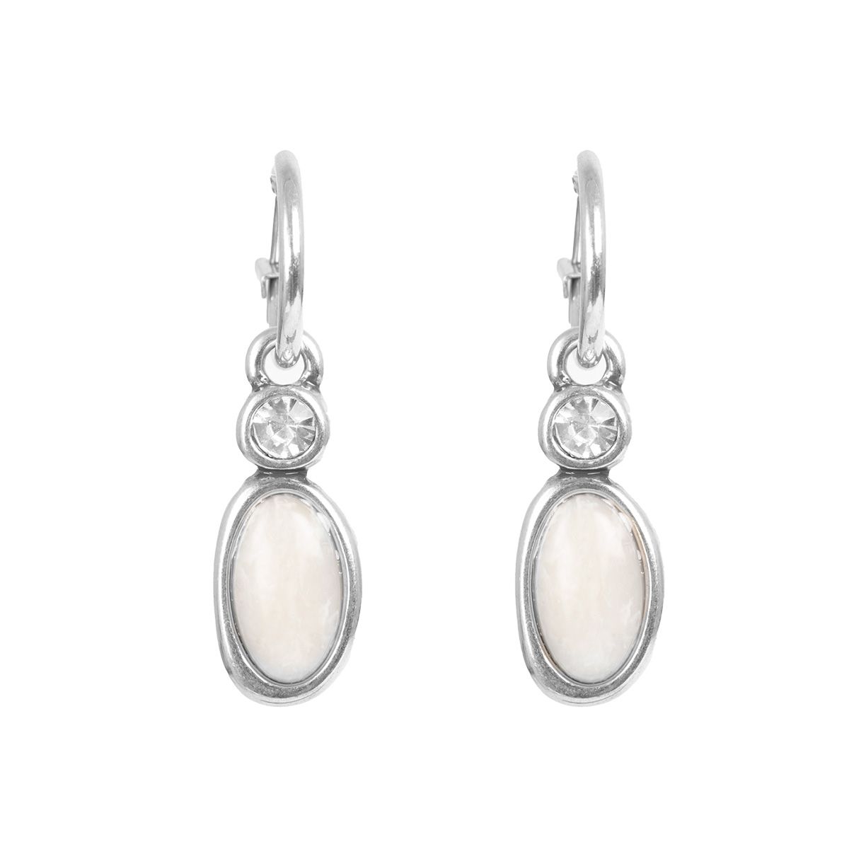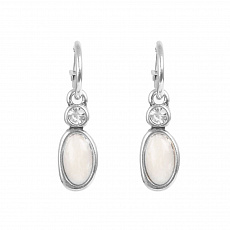 Brass earrings silver plated with insert from agate and glass
