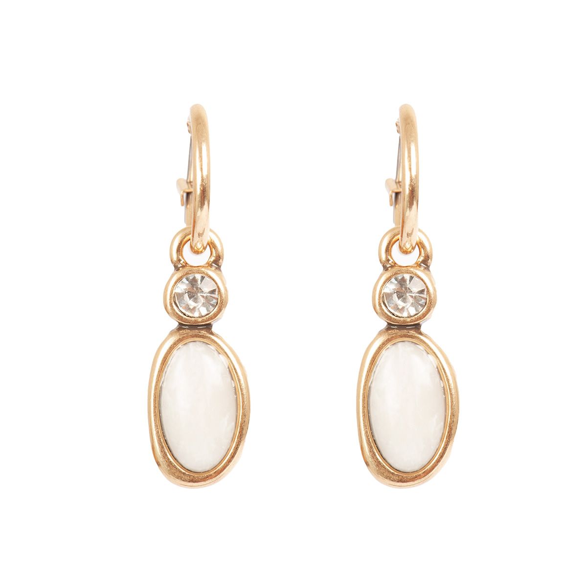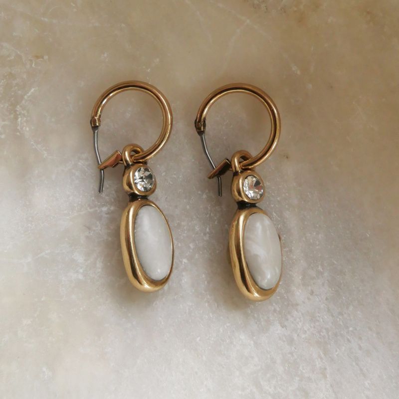 Brass earrings gold plated with insert from agate and glass