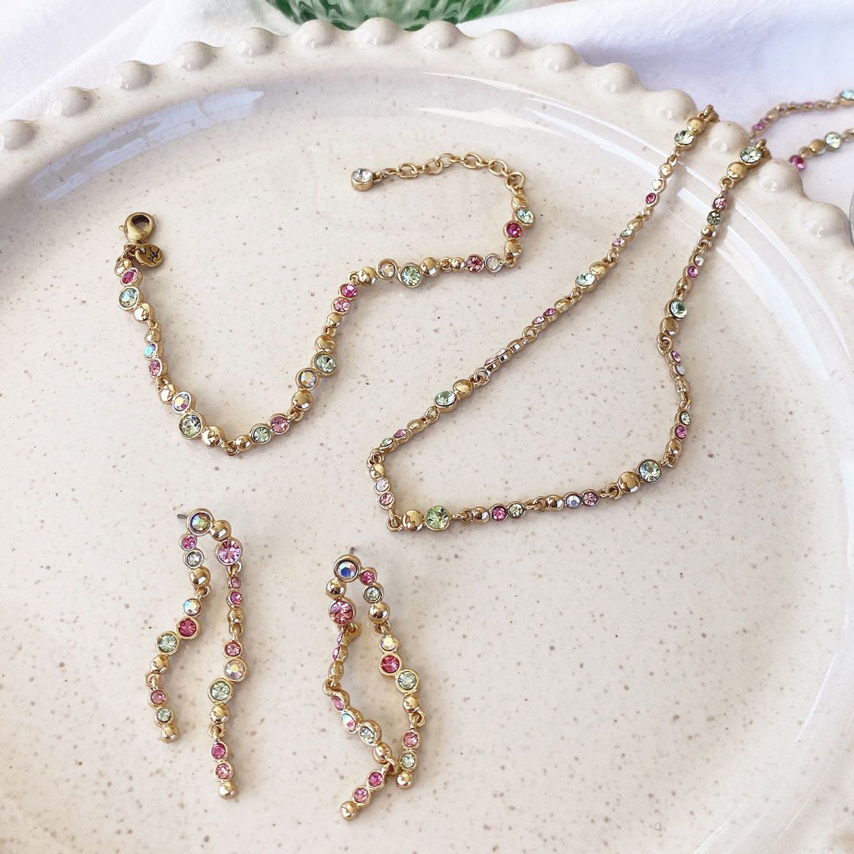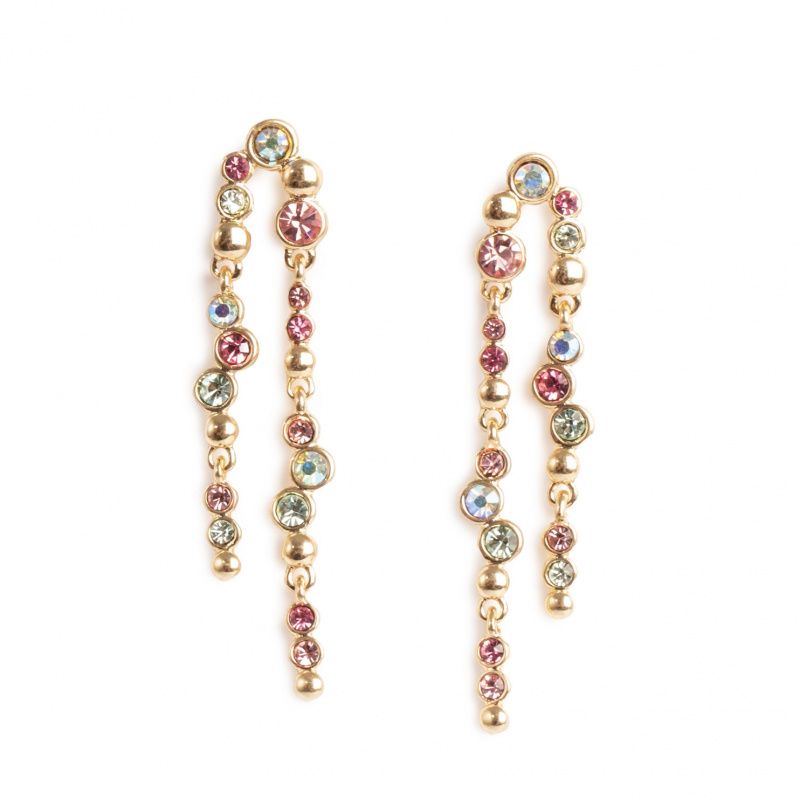 A beautiful and sparkling jewellery collection featuring crystal stones and metal droplets in delicate harmony. If you have multiple piercings, feel free to layer, and mix and match earrings. Plated with real silver and real gold.