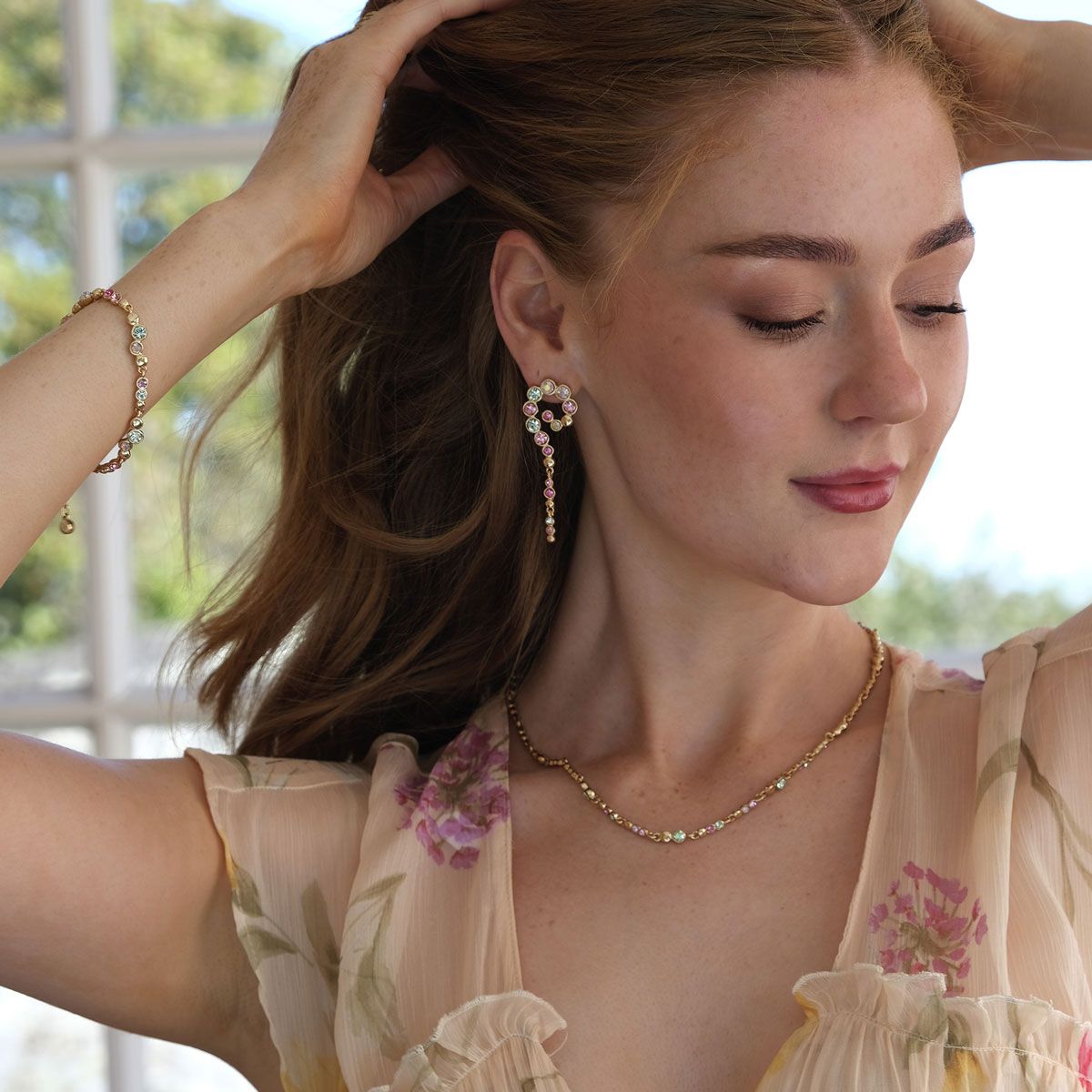A beautiful and sparkling jewellery collection featuring crystal stones and metal droplets in delicate harmony. If you have multiple piercings, feel free to layer, and mix and match earrings. Plated with real silver and real gold.